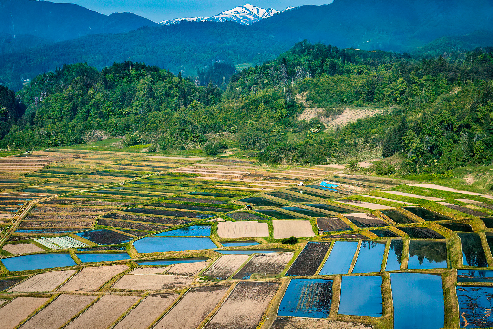 「椹平(くぬぎだいら)の棚田」は緩やかな扇状の斜面に棚田が作られていて、地域の伝統的な風景であると共に、写真家たちを魅了してきました。