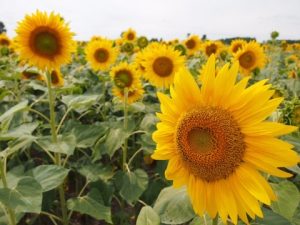 (それぞれの畑で開花時期をずらしているので、この1ヶ月間はいつ訪れても、どこかの畑で必ずひまわりが咲いています。)