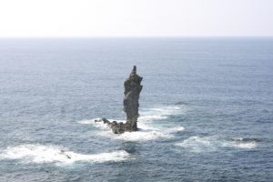 細長い地形でありながら、力強く海の中に立っている姿が自然の神秘を感じさせます。